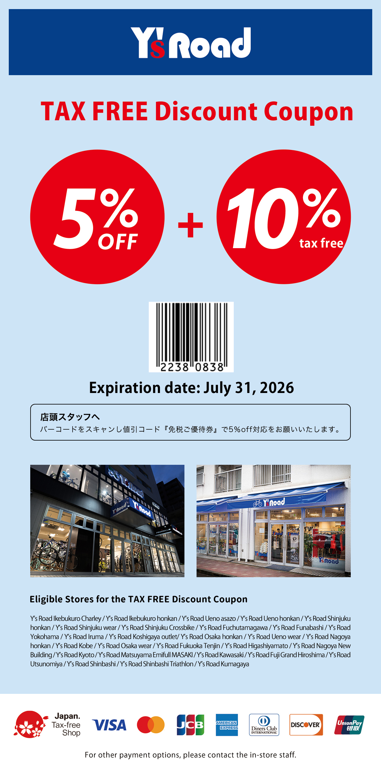 *Show this coupon along with your passport at the register when you want to make your tax-free purchase.
